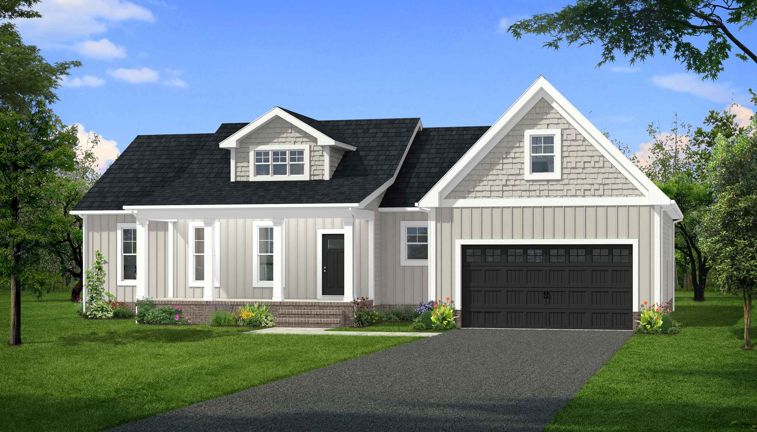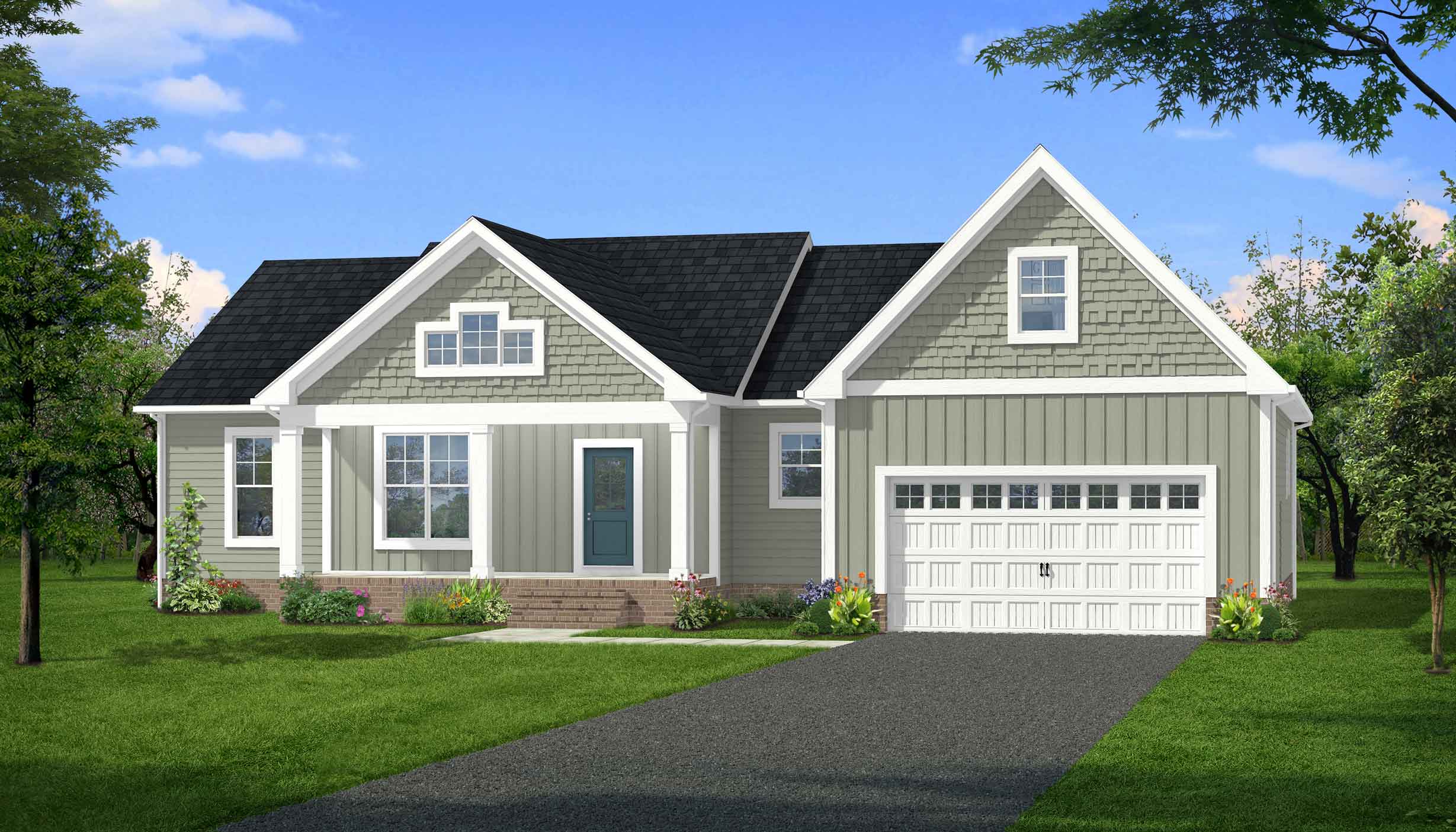 - Stamped concrete porches, rear patio, and sidewalk