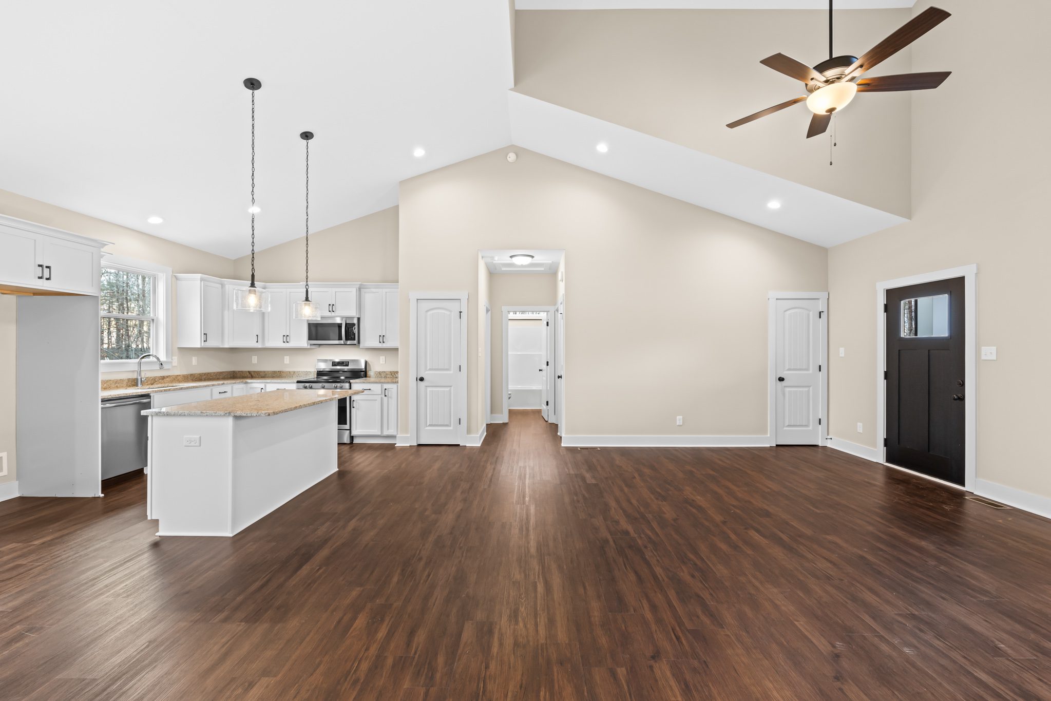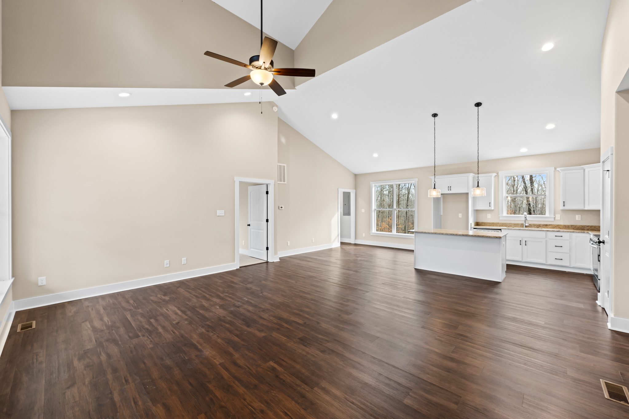 Welcome to your dream home, nestled in the heart of Buckingham County! This beautifully designed 3 BEDROOM 2 BATH home is set to be completed in December 2025, offering modern comforts in a serene, spacious environment. The OPEN FLOOR PLAN combines the kitchen, dining, & living areas into a spacious GREAT ROOM with a CATHEDRAL CEILING, perfect for gathering. The KITCHEN features GRANITE counters, MERILLAT CABINETS, a central ISLAND & a PANTRY. LVP FLOORING runs throughout the main living spaces. Comfortable BEDROOMS :Retreat to one of the three cozy bedrooms, each adorned carpeting for added comfort. These spaces offer tranquility and privacy, ideal for restful nights. Stylish BATHROOMS: The two well-appointed bathrooms feature modern fixtures and finishes. Durable LVP Flooring: Enjoy the beauty of luxury vinyl plank flooring throughout the main living areas, offering durability and easy maintenance, perfect for today’s active lifestyle.