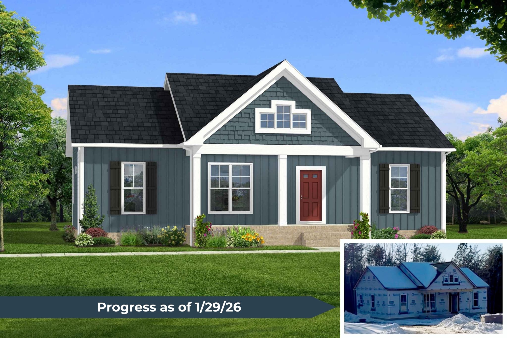 Enjoy the ease of new construction without the wait, with selections already thoughtfully chosen by Rock River Homes’ professional design team.The home features granite countertops, a large kitchen island, LVP flooring, stainless steel appliances, and cathedral ceilings. The primary bedroom includes a private en suite bath and walk-in closet, creating a comfortable retreat. Step outside to relax on the covered concrete front porch and take in the peaceful surroundings. Schedule your private showing today to secure this new home before it’s complete. Finished photos shown are of a previously built similar home. Please refer to kitchen, primary, and hall bath selection photos for this home’s design selections.