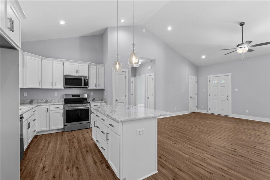 Introducing The Laurel Creek, a beautifully designed home by Rock River Homes, offering modern living space with an open layout that makes it feel even larger. This 3-bedroom, 2-bath residence features a spacious vaulted ceiling, luxurious granite countertops throughout, recessed lighting, and durable LVP flooring. The kitchen includes a convenient pantry and plenty of room for cooking and gathering. The primary suite offers an en suite bath and a generous walk-in closet. Enjoy the added benefits of a conditioned crawl space, gutters, and thoughtful finishes throughout. Take advantage of this rare opportunity to purchase a brand new Rock River Home that’s move-in ready!