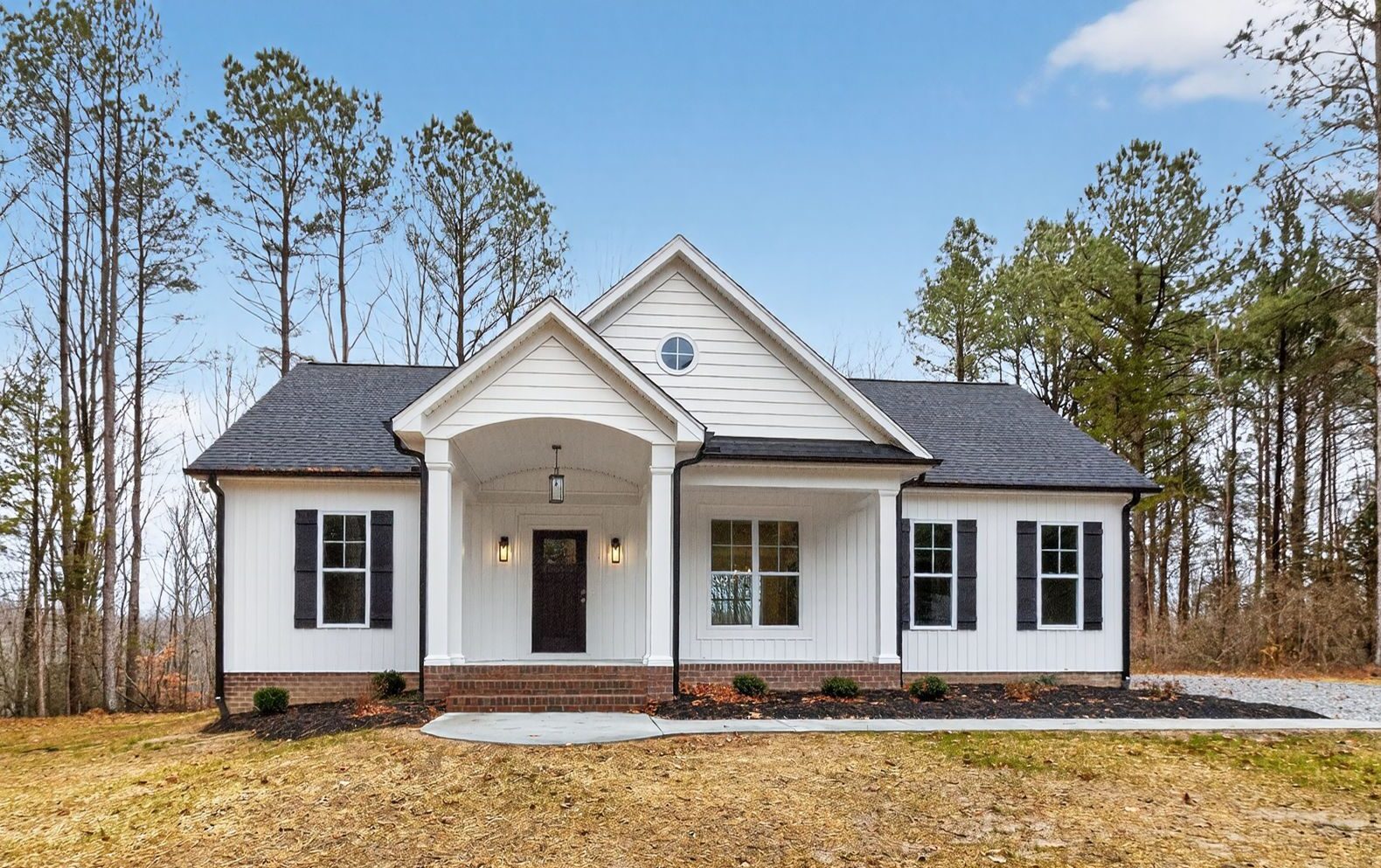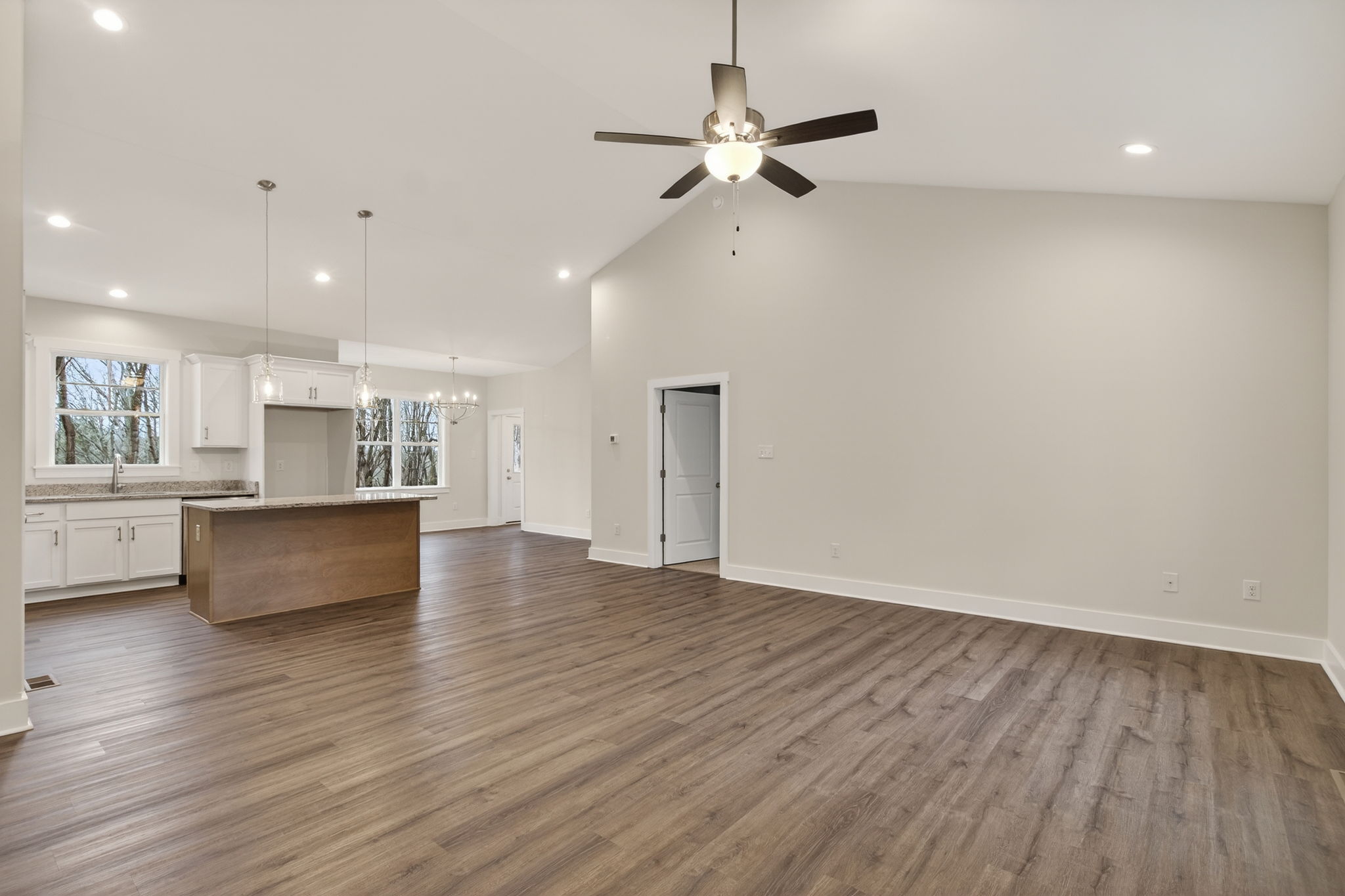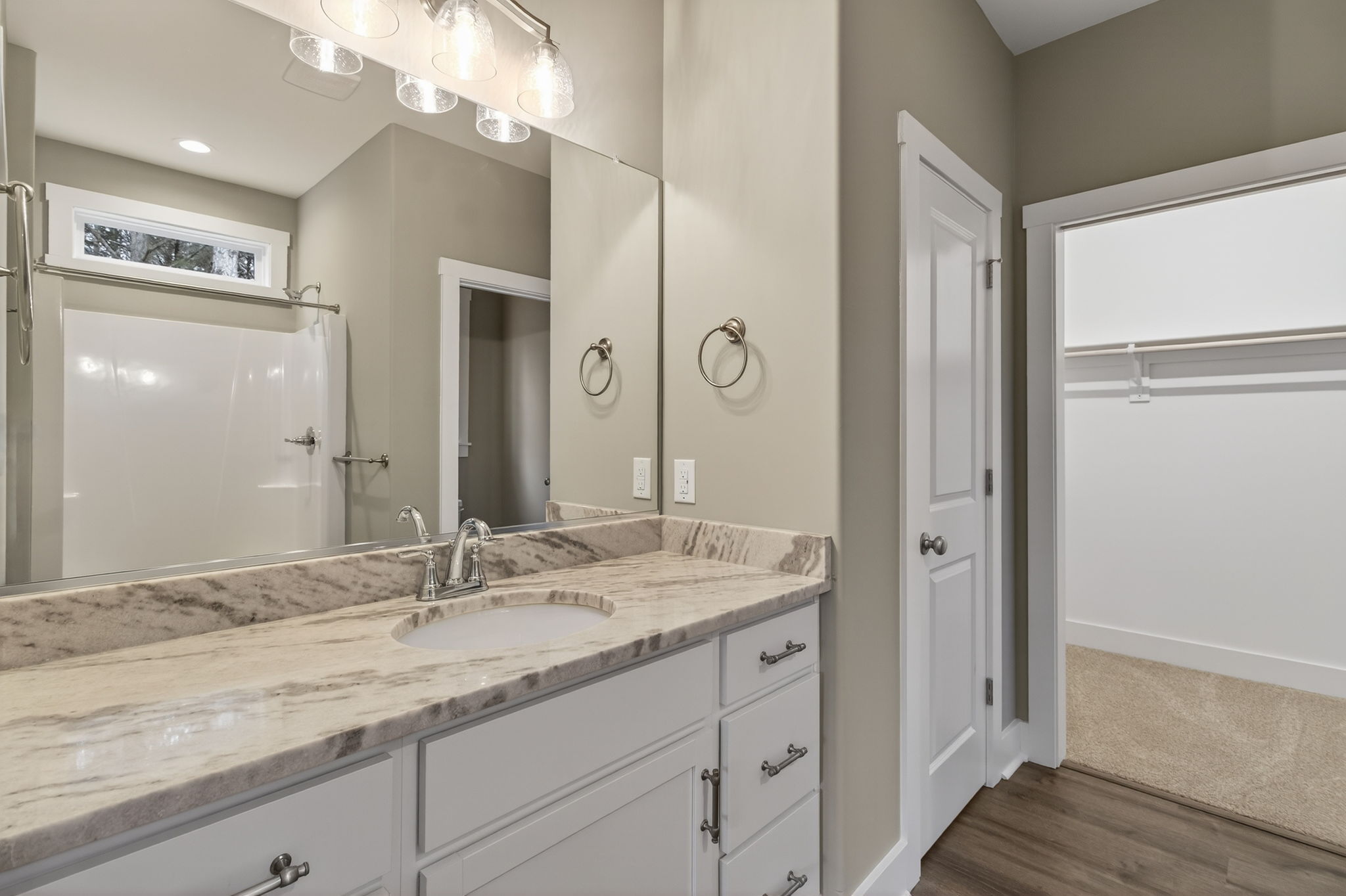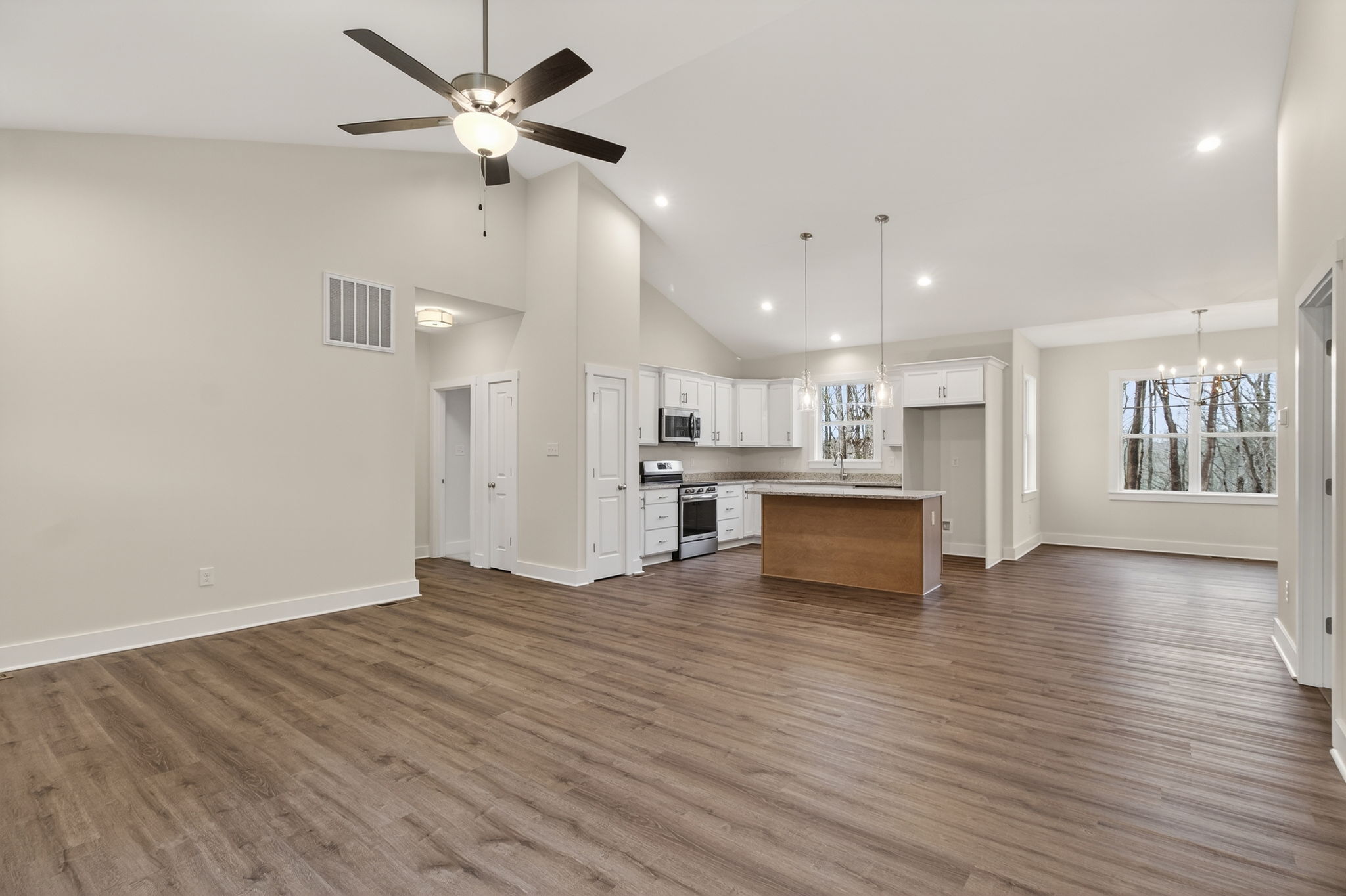 This stunning home includes granite countertops, a large kitchen island, Merillat cabinetry, and stainless steel appliances. The vaulted great room features cathedral ceilings and 9-foot ceilings run throughout the home, creating a spacious and airy feel. The thoughtfully designed mudroom includes a convenient drop zone bench, and the primary suite offers a walk-in closet and oversized shower. Exterior highlights include a covered concrete front porch and sidewalk, perfect for welcoming guests and enjoying the outdoors.