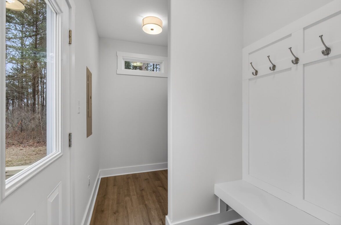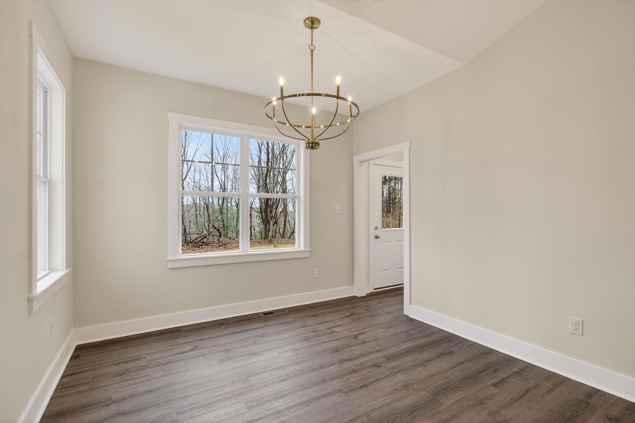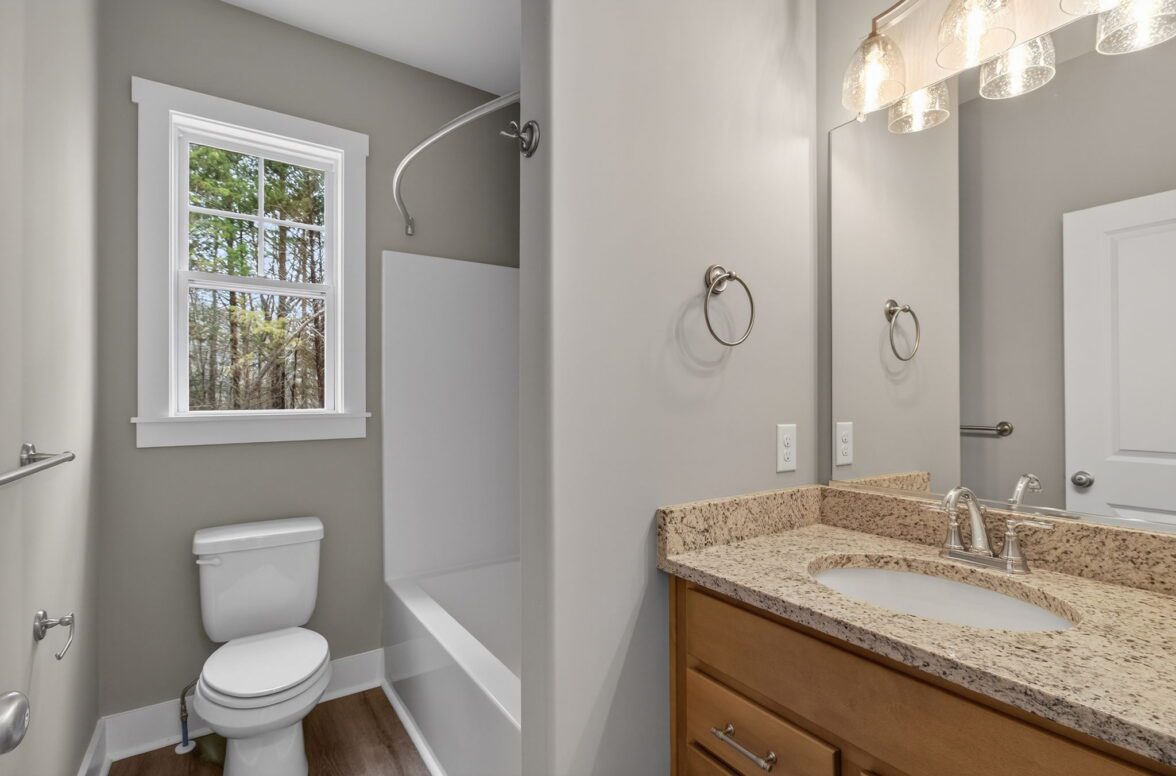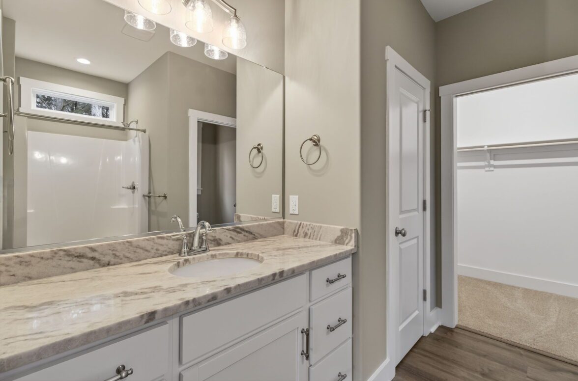 This stunning home includes granite countertops, a large kitchen island, Merillat cabinetry, and stainless steel appliances. The vaulted great room features cathedral ceilings and 9-foot ceilings run throughout the home, creating a spacious and airy feel. The thoughtfully designed mudroom includes a convenient drop zone bench, and the primary suite offers a walk-in closet and oversized shower. Exterior highlights include a covered concrete front porch and sidewalk, perfect for welcoming guests and enjoying the outdoors.