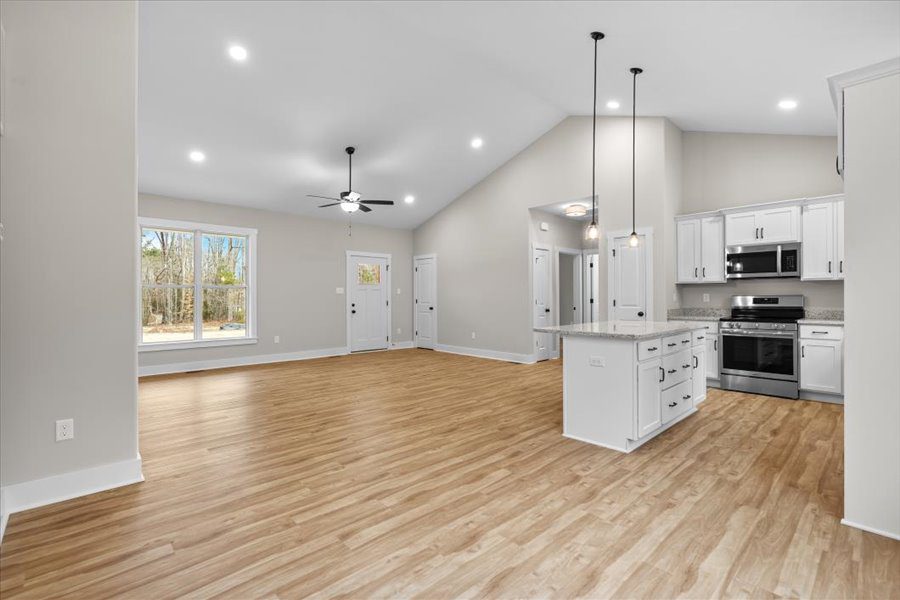 Welcome to this stunning new craftsman style home with all the modern farmhouse details, perfectly nestled on almost an acre in the sought after Country Club Shores community on beautiful Lake Gaston! The Laurel Creek floor plan is a functional 3 bedroom, 2 bathroom, 1358 sq.ft. home with upgraded black windows, black gutters, LVP throughout, cedar columns & accents! The kitchen is complete with granite countertops, an island, pantry, Merillat cabinetry & more! The generous primary bedroom does not disappoint with 9 ft. ceilings & primary bath ensuite that includes Level 2 granite countertops! Nothing is missing here from the conditioned crawlspace, air sealing package, 14 SEER Trane heat pump & a One Year Builders Home Warranty!